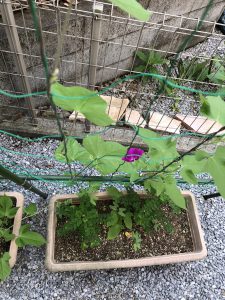 挑戦と言ったら聞こえはいいですが、プランターも支柱もすべて譲り受けたもの。
